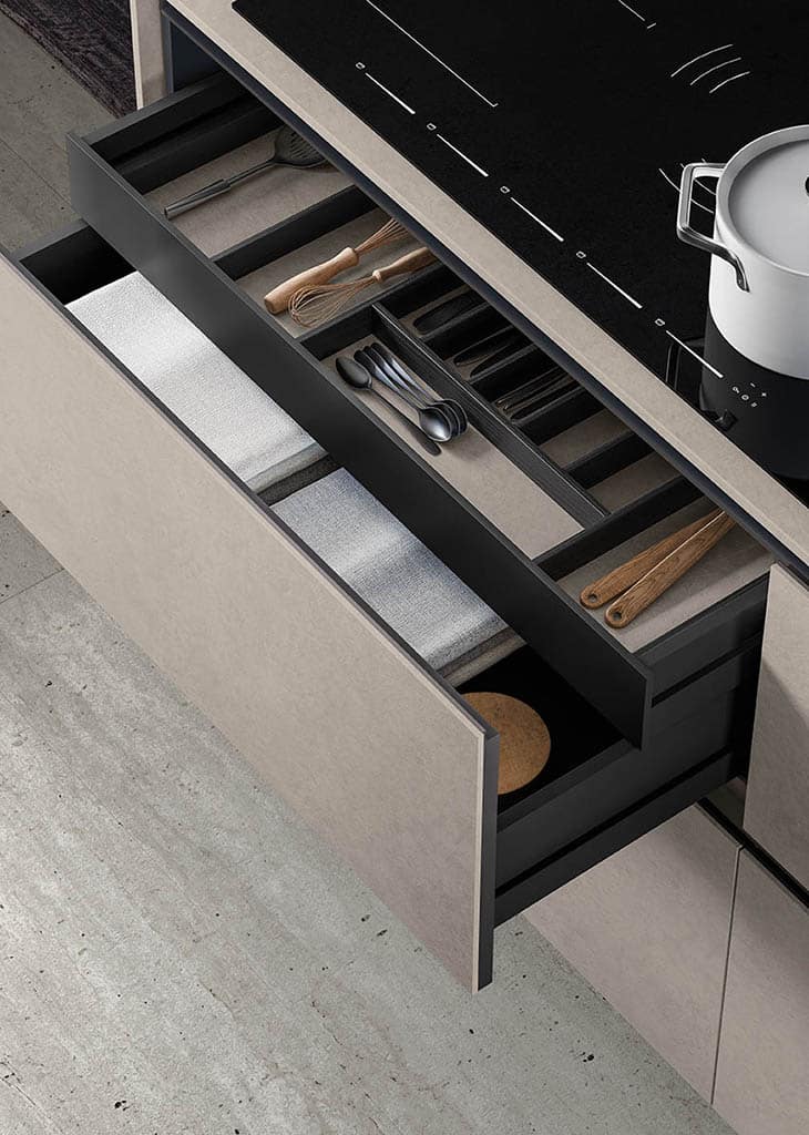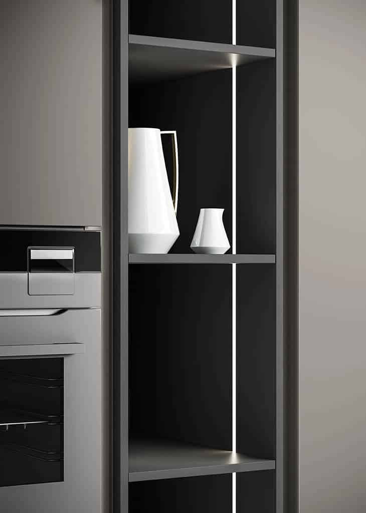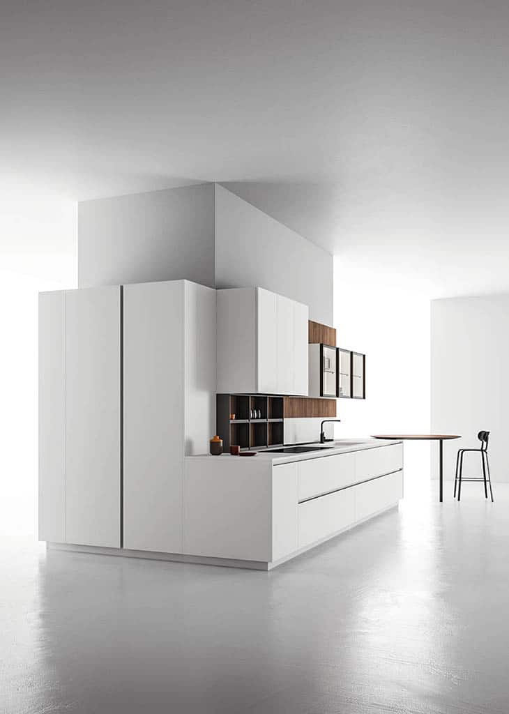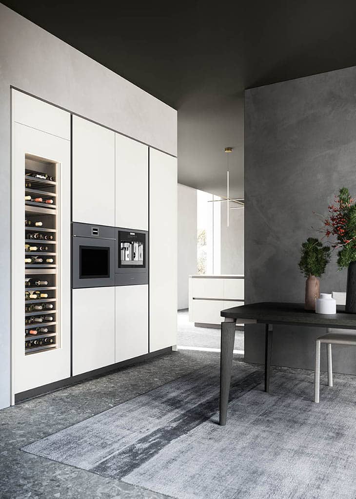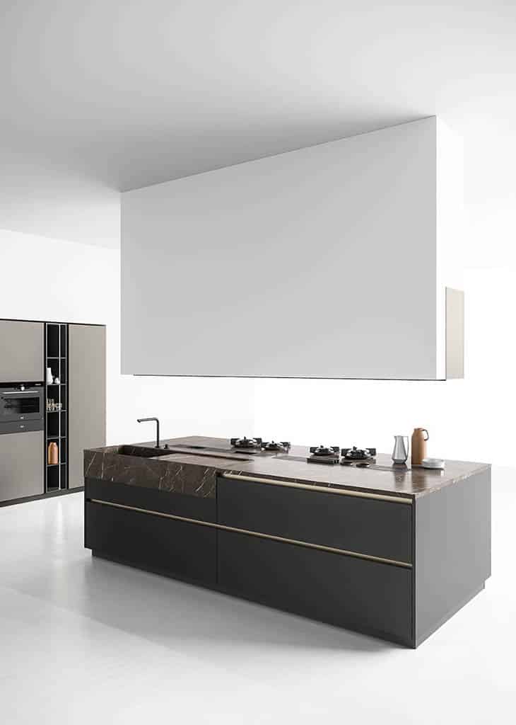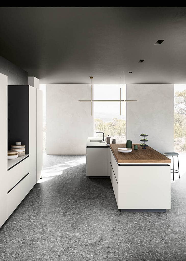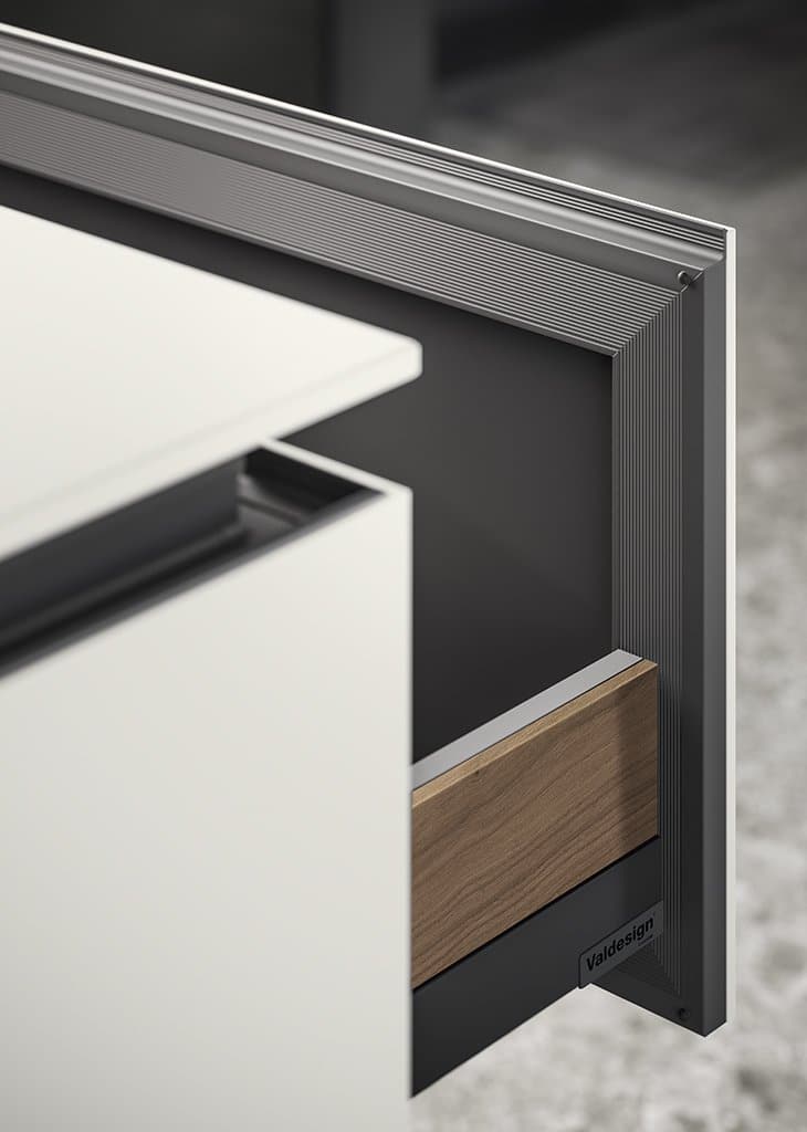 Zafferano naît d’une idée essentielle : offrir la liberté maximale de conception grâce à un cadre en aluminium technique, discret et polyvalent. Conçue pour accueillir une large variété de matériaux de haute qualité – du verre à la céramique, du Fenix aux laques – cette cuisine sur mesure s’adapte à tous les besoins et styles d’ameublement.