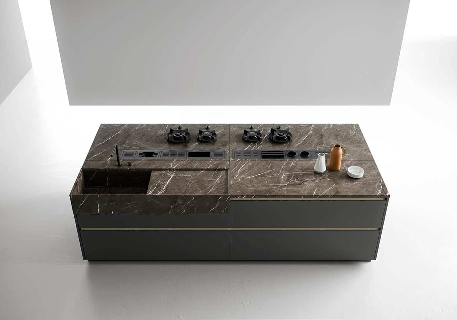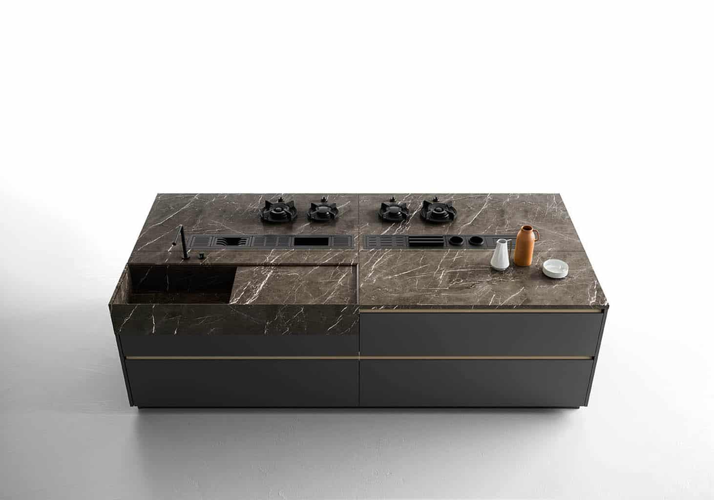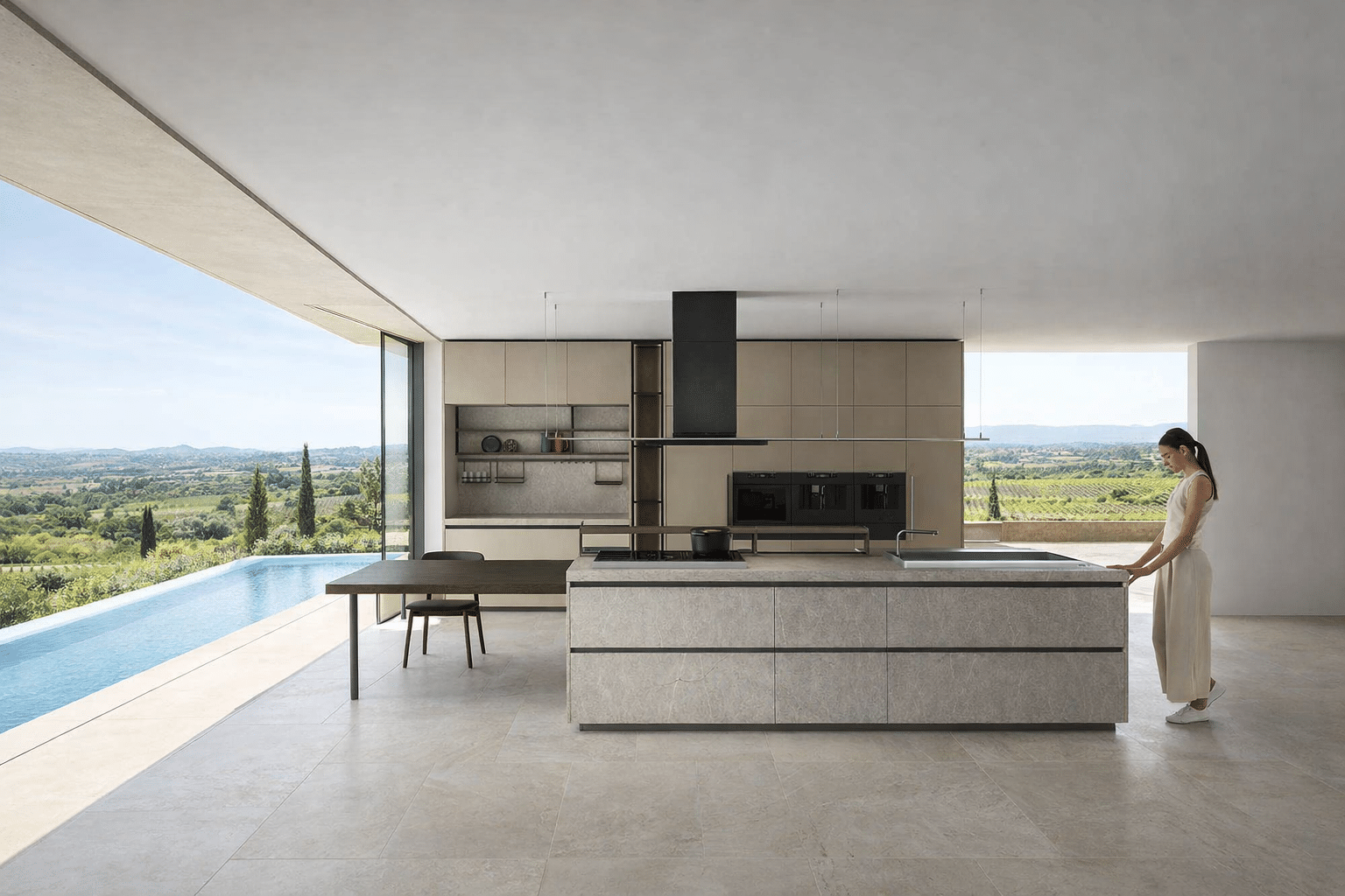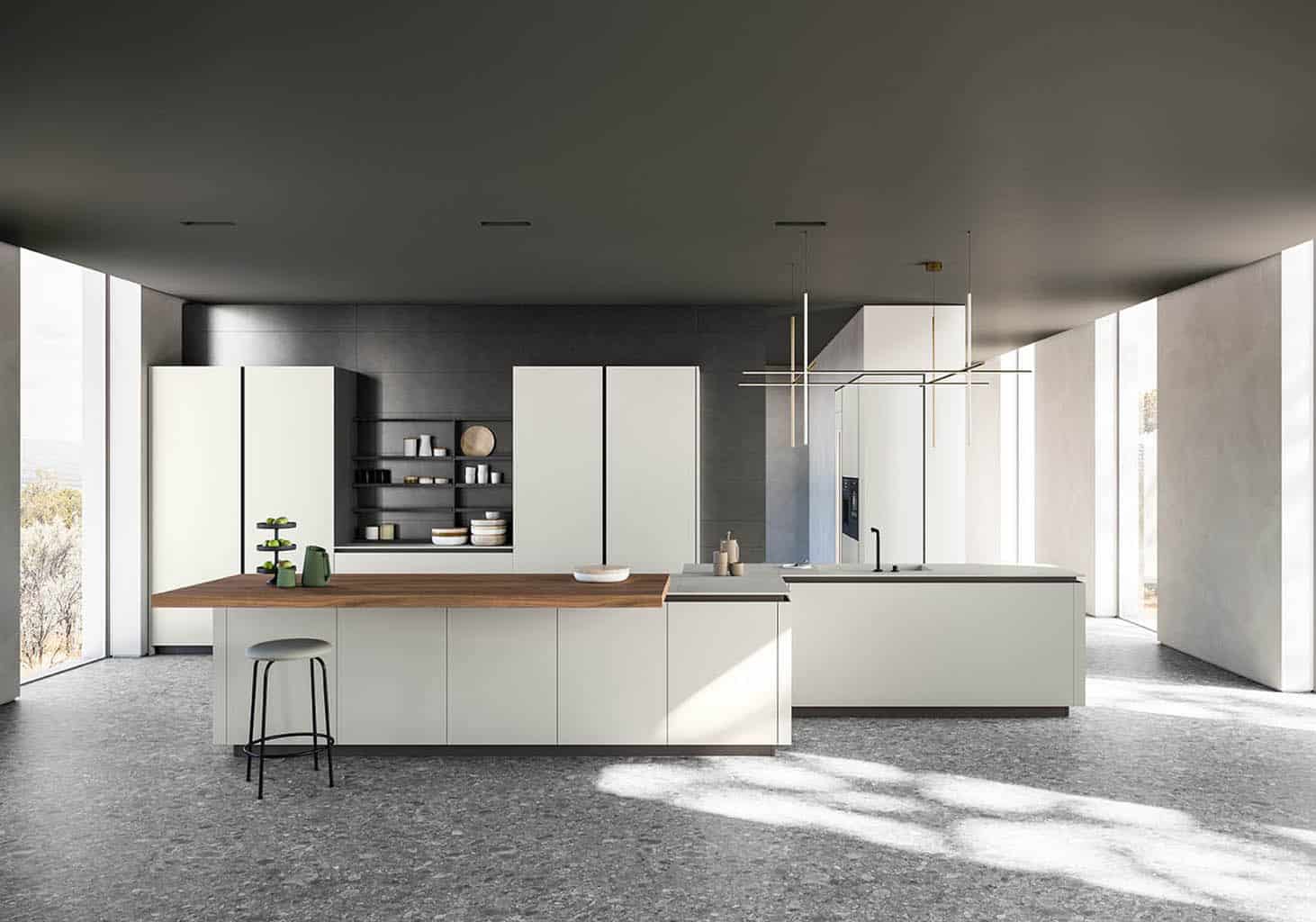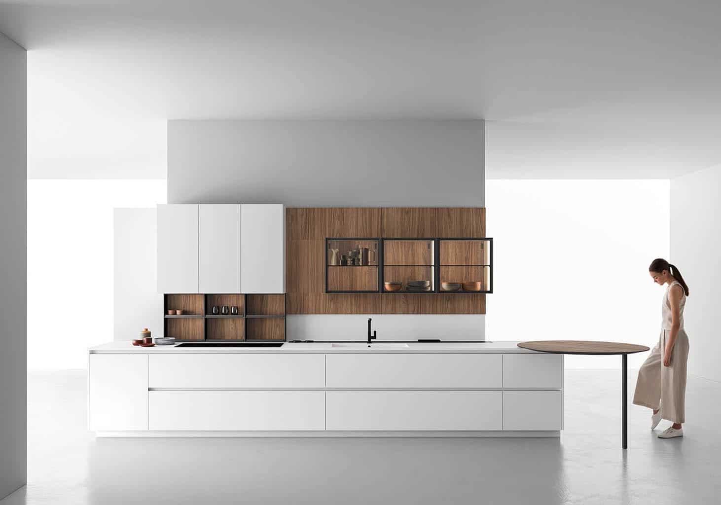 Zafferano naît d’une idée essentielle : offrir la liberté maximale de conception grâce à un cadre en aluminium technique, discret et polyvalent. Conçue pour accueillir une large variété de matériaux de haute qualité – du verre à la céramique, du Fenix aux laques – cette cuisine sur mesure s’adapte à tous les besoins et styles d’ameublement.